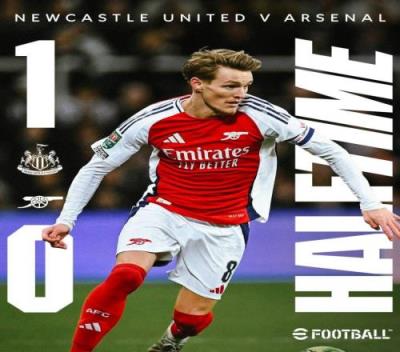 半场结束,阿森纳暂0-1纽卡斯尔。