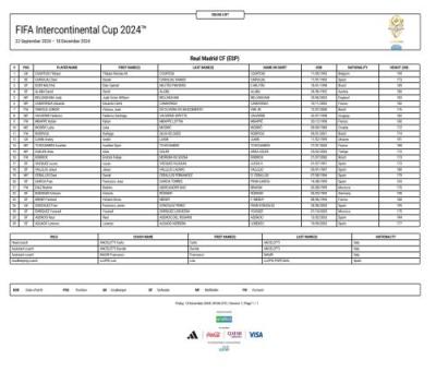皇马洲际杯名单: