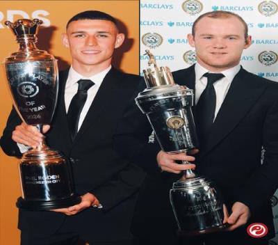 英格兰球员中,仅鲁尼和福登单赛季获评英超、FWA和PFA年度最佳