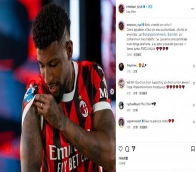 埃默森晒出自己身穿米兰球衣的加盟照,并表示:“我正在实现自己的梦想!我要感谢上帝给了我这次机会,感谢所有参与此次转会的人们,感谢伊布和米兰对我能力的信任。”