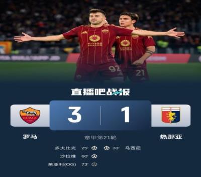 体育资讯1月18日报道宣称 在第21轮意甲联赛,罗马主场3-1战胜热那亚。罗马已经取得联赛主场四连胜。
