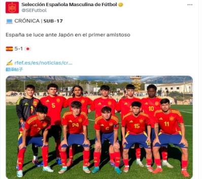 体育资讯12月13日报道宣称 西班牙U17队与日本U17队进行热身赛,西班牙队最终5-1取胜。