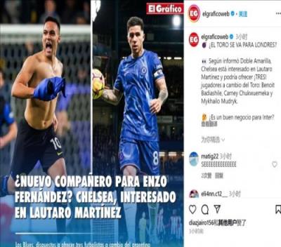 体育资讯12月22日报道宣称 据阿根廷媒体《El Gráfico》报道称,切尔西有意劳塔罗,愿意用巴迪亚西勒、楚克乌梅卡和穆德里克进行交换。