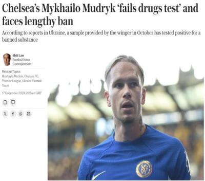 体育资讯12月17日报道宣称 乌克兰方面曝出消息,切尔西边锋穆德里克兴奋剂检测呈阳性,恐面临禁赛。英国《每日电讯报》就此事询问了穆德里克以及切尔西。