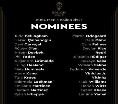 体育资讯11月09日报道宣称 金球奖具体票选情况今日公布,在所有记者的投票中,仅有2个国家的记者选择了本国球员,分别是巴西记者选了维尼修斯,尼日利亚记者选了卢克曼。