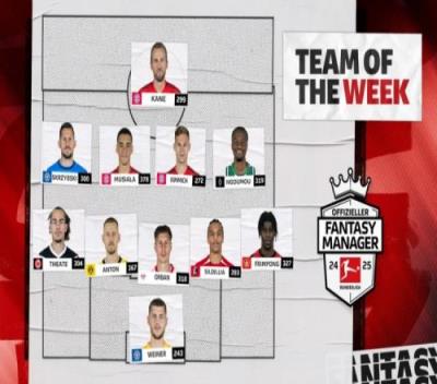 体育资讯2月3日报道宣称 德甲第20轮联赛已经完赛,德甲官方也评出了本轮最佳阵容,拜仁3将在列。