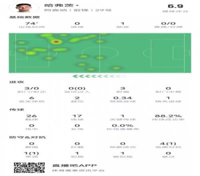 体育资讯12月8日报道宣称 英超第15轮,阿森纳客战富勒姆。哈弗茨首发出战,送出1次助攻,1次关键传球,但也错失了1次进球机会,评分6.9。
