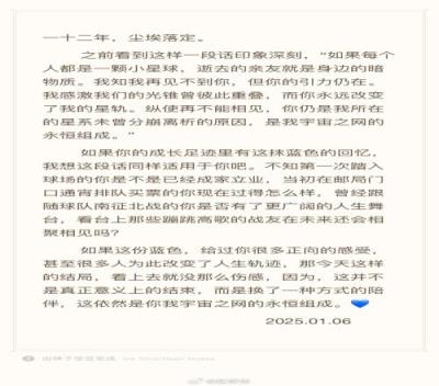 如果这份蓝色,给过你很多正向的感受,甚至很多人为此改变了人生轨迹,那今天这样的结局,看上去就没那么伤感,因为,这并不是真正意义上的结束,而是换了一种方式的陪伴,这依然是你我宇宙之网的永恒组成。