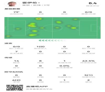 体育资讯12月27日报道宣称 曼联在本轮英超客战狼队,霍伊伦本场数据如下: