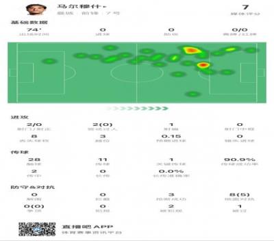马尔穆什本场数据:2次射门0次射正,3次越位,3次抢断