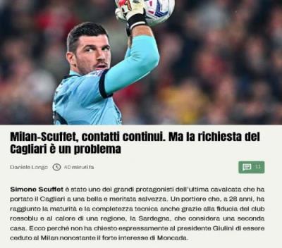 目前主要分歧在于转会费用,卡利亚里方面希望以租借+买断形式出售斯库费特,费用500万欧元。而米兰方面正在权衡是否继续使用年轻门将的信任,或者是争取签下斯库费特。