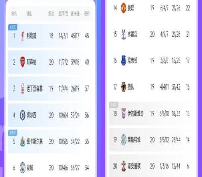 而在积分榜另一端,英超榜首利物浦在少赛2场的情况下5分领跑英超,也有一些断层领跑的意思,与圣徒首尾呼应。