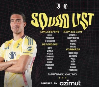 尤文对阵博洛尼亚大名单:弗拉霍维奇、阿季奇、小孔塞桑在列
