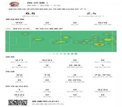 还在谦逊哈兰德本场数据:1失点2关键传球2过人成功,评分6.5
