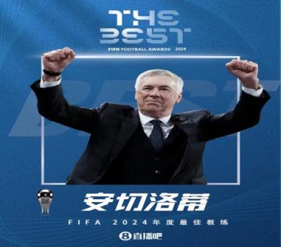 体育资讯12月18日报道宣称 FIFA年度颁奖,官方公布了年度最佳教练获得者,安切洛蒂当选。