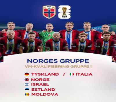 2026年世界杯欧洲区预选赛抽签分组,挪威的同组对手有以色列、爱沙尼亚、摩尔多瓦,以及欧国联1/4决赛德国vs意大利的败者。