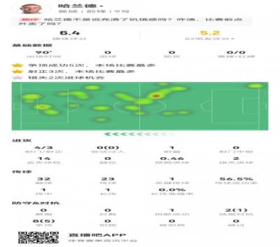 体育资讯1月15日报道宣称 本轮英超,曼城客场2-2遭布伦特福德绝平。此役哈兰德首发打满全场,球员全场重点数据如下↓