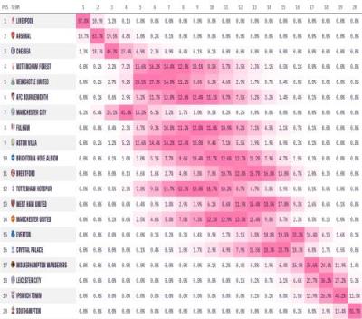 Opta对英超夺冠概率的最新预测: