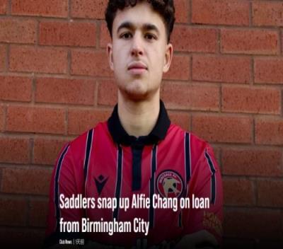 英乙领头羊沃尔索尔官宣,球队从伯明翰租借22岁华裔中场阿尔菲-张,租期至本赛季结束。