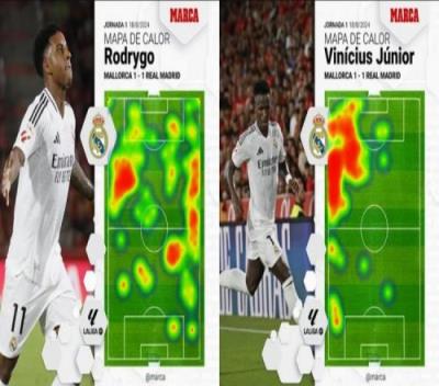 赛后,安切洛蒂在新闻发布会上反复强调了平衡的问题。西媒《马卡报》则晒出了四人热点图进行分析,皇马进攻人员的主要活动区域在左路较为集中。