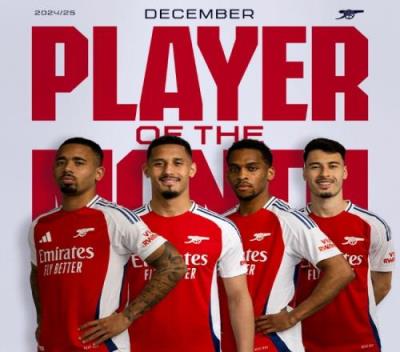 体育资讯12月31日报道宣称 阿森纳官方宣布了12月份最佳球员的候选名单,分别是热苏斯、马丁内利、萨利巴和廷伯。