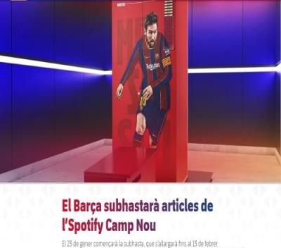 巴萨将拍卖球员衣柜、角旗杆等,据悉梅西衣柜35万美元起拍