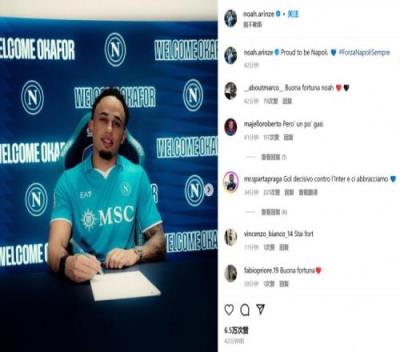 被米兰外租半赛季!奥卡福社媒晒签约照:很自豪能来到那不勒斯