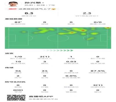 体育资讯12月23日报道宣称 利物浦在本轮英超6-3领先热刺,孙兴慜本场数据如下: