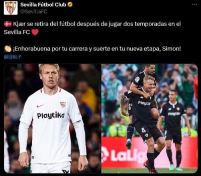 塞维利亚官方写道:“克亚尔宣布退役,他曾经为塞维利亚俱乐部效力2个赛季。祝贺你所拥有的职业生涯,祝愿你在新阶段能够一切顺利,西蒙!”
