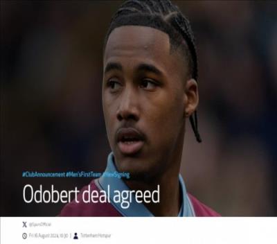 官方:热刺敲定伯恩利19岁边锋奥多伯特转会,签约5年
