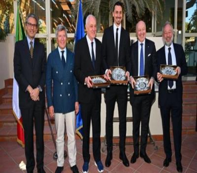体育资讯1月3日报道宣称 意大利球队的代表团在意大利超级杯开赛前拜访意大利驻利雅得大使馆,米兰、国米、尤文、亚特兰大等队高层和代表人物悉数到场并受到欢迎。