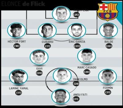 弗利克最喜欢的战术体系是4-2-3-1,它完美适应了这些球员的特点。以青训球员为主的阵容,不仅可以加强对俱乐部身份认同,还能够证明用自家培养的球员在最高水平上进行竞争是可行的。”