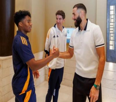 体育资讯1月9日报道宣称 皇马官网发文,本泽马到球队在吉达的下榻酒店探望老东家和老队友们。