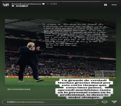 体育资讯11月16日报道宣称 当地时间本周五,曼联中卫利桑德罗-马丁内斯在个人INS上发文,与范尼斯特鲁伊进行了告别。