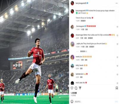 曼联在欧联杯取得5连胜,以8场不败战绩进入16强,马奎尔也在个人社媒晒出本场庆祝照片:“以不败战绩结束小组赛,16强战很快到来!现在是时候专注于周末的比赛了。”