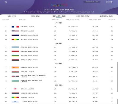 4强预定奥运男足夺冠赔率:法西阿日前4,暂时全都是小组第1