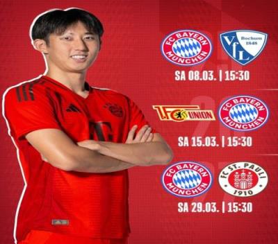 体育资讯2月6日报道宣称 德甲官方公布了第25到第27轮联赛的开球时间,拜仁的3场比赛都在北京时间22:30进行。