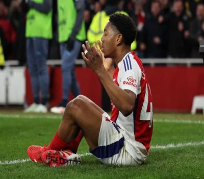 体育资讯02月03日报道宣称 英超第24轮焦点战,阿森纳主场5-1大胜曼城。阿森纳小将斯凯利本场打进精彩进球,随后他做出了哈兰德的经典打坐庆祝动作。