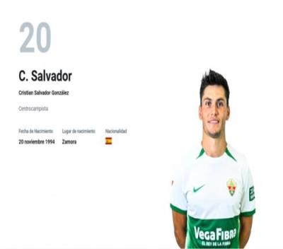 萨尔瓦多今年将满31岁,场上司职后腰。他的技术特点偏向于防守,通过大范围的跑动来搅乱对手进攻节奏,同时具备一定的梳理球功能。本赛季至今,他为埃尔切出场11次,其中仅有2次首发。