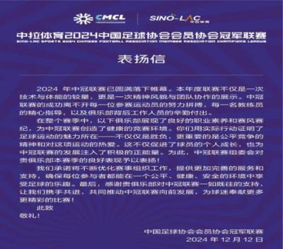 体育资讯1月3日报道宣称 官方消息,因为赛风赛纪表现良好,中国足协特向昆明城市等27家中冠俱乐部发表扬信。原文如下: