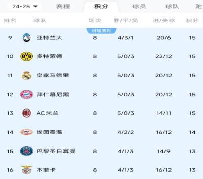 体育资讯01月30日报道宣称 欧冠联赛阶段全部结束,皇马与拜仁分别排在积分榜的第11位和第12位。