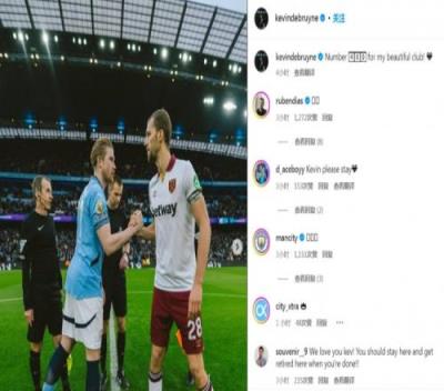 体育资讯1月5日报道宣称 英超第20轮曼城4-1西汉姆联,比赛中德布劳内首发,本场比赛也是德布劳内代表蓝月亮出战的第400场比赛,赛后他也在ins上晒出予以庆祝。