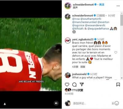 “感谢南安普顿,我与你们一起度过了我最好的时光;感谢曼联,世界上最伟大的俱乐部之一;感谢埃弗顿、尼斯、西悉尼流浪者、基费西亚。”