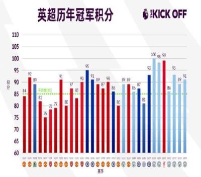 最近十年的冠军积分基本上都是“平均分”之上,其中曼城获得了100分、98分的冠军积分,利物浦夺冠赛季积分也来到了99分。
