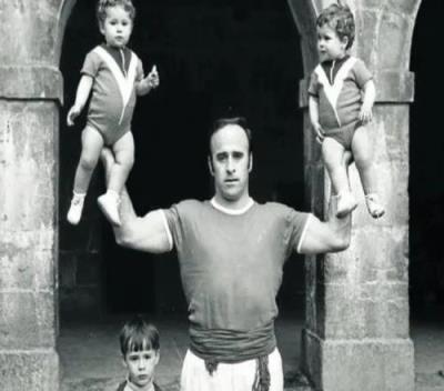 在封面的这张照片中,洛佩特吉与父亲站在一起,而他的父亲单手托举着女儿和小儿子。