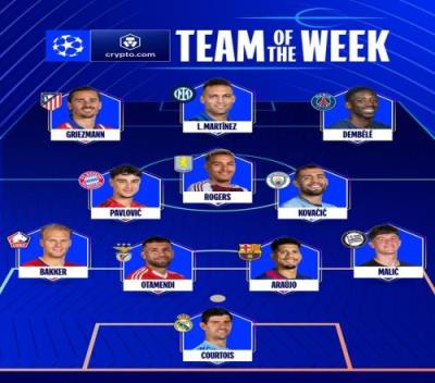 体育资讯1月31日报道宣称 欧冠联赛阶段在昨天落下帷幕,欧冠官方评选了联赛阶段末轮的最佳阵,具体如下: