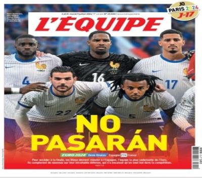 体育资讯7月9日报道宣称 法国将在欧洲杯半决赛对阵本届最大热门西班牙,《队报》也为球队造势。