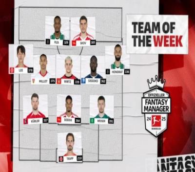 战拜仁双响!德甲第14轮官方最佳阵:韩国李在城领衔,维尔茨在列