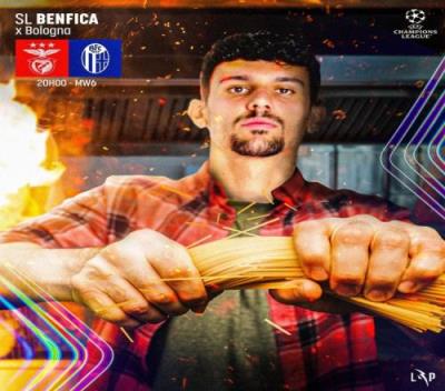 葡超官方社媒发布了为此役制作的海报,内容为本菲卡后卫托马斯-阿劳霍折断手中的意大利面。