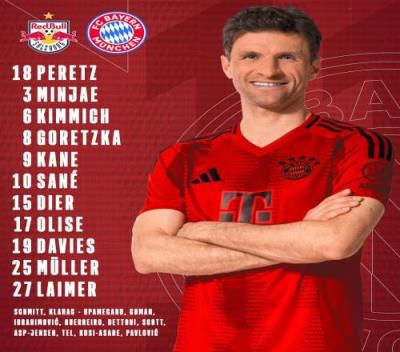 体育资讯1月6日报道宣称 足球友谊赛,拜仁对阵萨尔茨堡红牛。赛前,官方公布了本场的首发名单。
